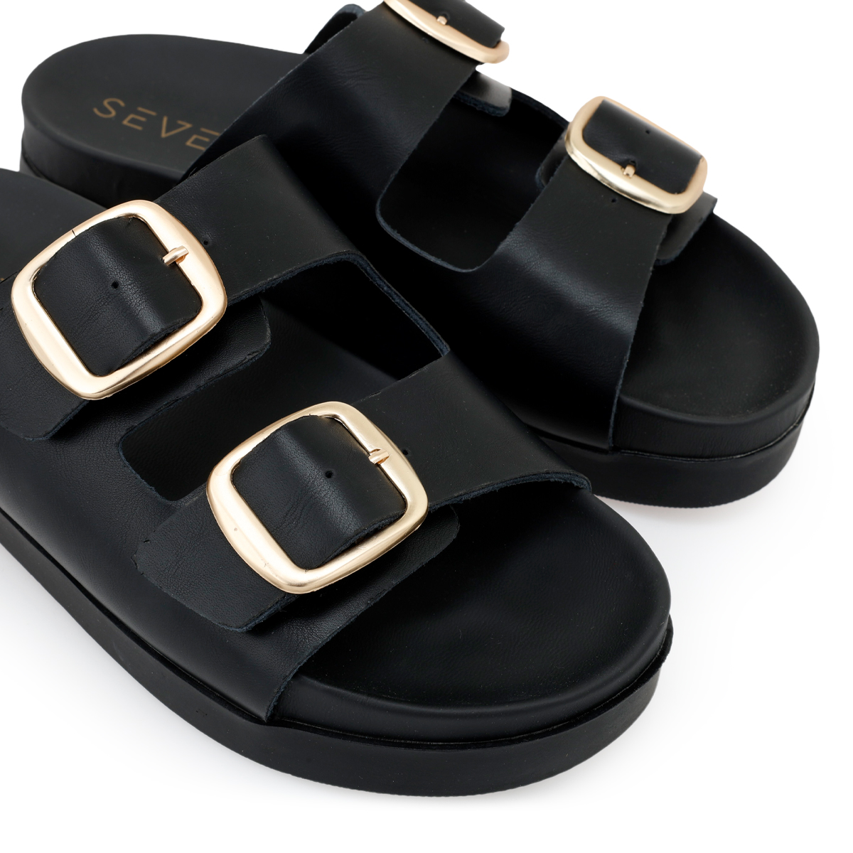 SEVEN ΔΕΡΜΑΤΙΝΑ ΣΑΝΔΑΛΙΑ. CODE:051 BLACK.
